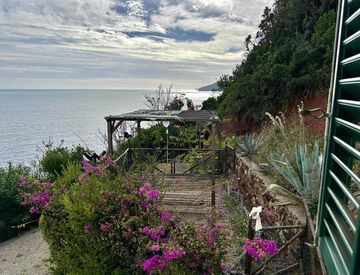 La villa è circondata dal verde e si affaccia sul mare sottostante con una vista spettacolare su Cala Seregola, sull'isolotto di Palmaiola e sulla costa maremmana, adiacente alla villa troviamo una delle più belle spiagge della costa che brilla.
