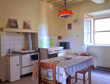 Il primo piano si sviluppa interamente l'appartamento con un'ampia cucina tradizionale, due camere da letto ed un bagno.