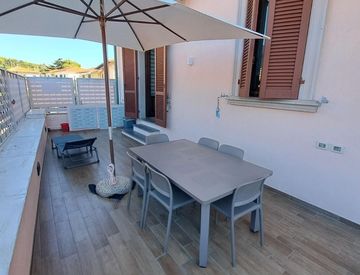 Castiglioncello a 70 mt. Dal mare appartamento al piano primo al quale si accede da scala interna composto da ingresso, soggiorno con angolo cottura e grande e bellissima terrazza per pranzi e cene all’aperto, ripostiglio, camera matrimoniale, bagno, termo autonomo a metano e climatizzatore, con annessa cantina al piano terra.