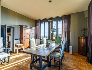 L’appartamento è composto da un AMPIO SOGGIORNO con SALA DA PRANZO nell’ex loggiato, è ampiamente finestrato e luminoso e presenta elementi caratteristici come le antiche colonne che scandiscono le finestre.