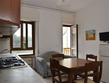 Composto da soggiorno pranzo con zona cottura, ampia camera matrimoniale, bagno e balcone.