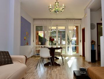 Al piano terreno ampio salone, cucina pranzabile, soggiorno/camera ed un bagno finestrato. Accesso diretto al doppio giardino privato, sul fronte e sul retro, dotato di ampio portico e zone relax.