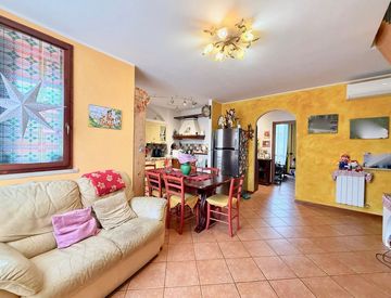 - al primo livello troviamo l’ingresso su un’ampia zona giorno con cucina e soggiorno in open-space e con accesso ad un piacevole loggiato con gradevoli affacci sulla natura, due camere da letto di cui una matrimoniale ed una singola con accesso ad un secondo loggiato anch’esso circondato dalla natura, bagno finestrato dotato di vasca idromassaggio e comodo ripostiglio con accesso ad un terzo loggiato adibito a zona lavanderia;