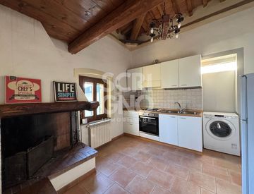 L'appartamento è composto da zona giorno con angolo cottura e camino, piccolo soggiorno con bagno nuovo e soppalco con camera matrimoniale.