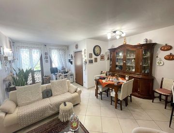 In complesso ben tenuto ed in ottima posizione, appartamento di circa 90 mq. situato al piano primo ed ultimo. Lappartamento si presenta in ottime condizioni ed e composto da ingresso con ampio soggiorno con angolo cottura, due camere di cui una matrimoniale, due bagni, ampio ripostiglio e lavanderia. Completa la proprieta un garage di circa 20 mq.