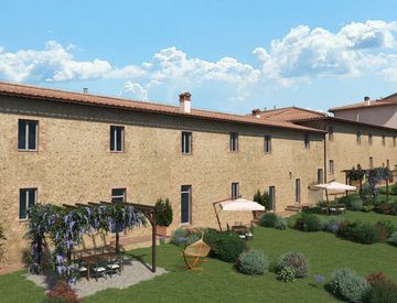 In un contesto esclusivo e riservato, a pochi minuti dal centro storico di Siena, proponiamo un elegante appartamento di nuova costruzione inserito all’interno di una raffinata ristrutturazione di una vecchia fattoria con piscina condominiale. L'appartamento in oggetto si sviluppa al piano terra e si compone di ingresso indipendente da resede privato di circa 80 mq, soggiorno con angolo cottura, 2 camere matrimoniali e bagno. L’impiantistica di ultima...