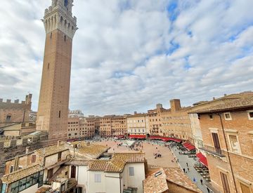 In uno dei palazzi più affascinanti del centro storico di Siena, Frimm Academy Casa propone in vendita un esclusivo appartamento di 118 mq, disposto su V e VI piano, con incantevole affaccio diretto su Piazza del Campo e sulla Torre del Mangia.