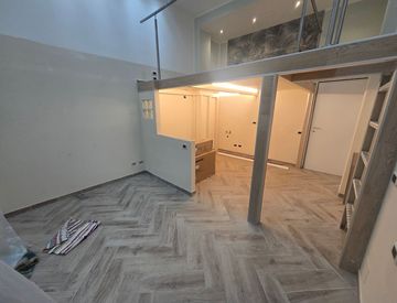 L’immobile, disposto su un unico livello, è composto da zona giorno con angolo cottura, ripostiglio/lavanderia e bagno finestrato. Grazie all’importante altezza dei soffitti è stato realizzato un soppalco d’arredo, perfetto come zona notte.