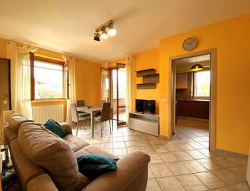 Internamente l’immobile si compone di luminoso pranzo-soggiorno con accesso a terrazza coperta e panoramica, ideale per pranzi all’aperto, cucinotto separato, capiente e funzionale, dotato di finestra, camera matrimoniale e camera doppia con accesso al balcone e un bagno finestrato con doccia.