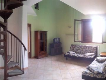 Suvereto, fuori dalle mura, in zona poco transitata, vendesi appartamento disposto su due piani, con ingresso indipendente da scala esterna, così composto: piano primo - soggiorno, cucina, camera matrimoniale, bagno ed ampia terrazza pranzabile. Piano secondo- due camere con bagno. Piano terreno -garage mq 30 e piccola porzione di giardino.