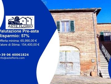 Riferimento: 4495192 LOC. PRESELLE, 53049 Torrita di Siena Siena Lotto: 1 Diritto di piena proprietà su porzione di casa colonica composta da appartamento, locali accessori, magazzino e corte esclusiva e su fienile e terreni Data di vendita: 10/02/2026 11:30 Offerta minima: € 65.990 Valore di stima 154.400, 00 Studio di Fattibilità Pre-Asta Offriamo consulenza legale completa per l'acquisto tramite asta giudiziaria. I nostri servizi includono: Ricerca...