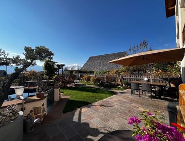 Punto di forza è senza dubbio il grande giardino di circa 250 m², curato nei minimi dettagli, con un laghetto naturale balneabile e cinque koi giapponesi — un’oasi di relax e benessere perfetta per rinfrescarsi nelle giornate estive. La terrazza, esposta a sud-est, offre una magnifica vista panoramica sul Monte Lucco (Laugenspitze). L’esposizione garantisce sole per tutto l’anno e un’atmosfera di assoluta tranquillità.