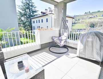 La zona giorno, luminosa e accogliente, con cucina a vista, rappresenta il cuore della casa e invita a momenti di convivialità. La proprietà comprende inoltre tre luminose camere da letto e due bagni moderni. La terrazza offre uno spazio esterno ideale per rilassarsi, mentre la cantina garantisce ulteriore spazio di deposito.