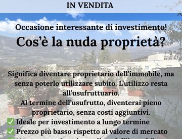Si propone in vendita la nuda proprietà di un immobile: acquisti la casa oggi a un prezzo vantaggioso, mentre l’attuale proprietario mantiene il diritto di abitarla (usufrutto).