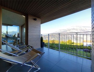 La luminosa zona giorno, completamente esposta a ovest, offre un'accogliente atmosfera e una splendida vista panoramica sul Bondone e sulla Paganella. L'abitazione si compone di un ampio soggiorno con cucina, due camere da letto — una delle quali dotata di cabina armadio —, un bagno finestrato e una spaziosa terrazza ideale per godersi momenti di relax all'aperto.