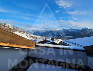 Nel pittoresco borgo di Daiano, nel cuore della Val di Fiemme, si propone questa mansarda di charme, che offre una vista mozzafiato sulla catena del Lagorai.