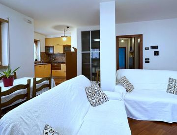 L’appartamento si distingue per gli spazi generosi e l’ottima esposizione. La zona giorno è composta da un accogliente soggiorno con angolo cottura, con accesso diretto alla terrazza esposta a sud, ideale per momenti di relax all’aperto.