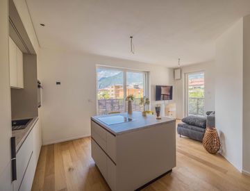 La vostra nuova casa vi offre un'oasi di pace e comfort. Grazie all'ascensore potrete raggiungere comodamente l'appartamento, dove le ampie finestre garantiscono ambienti luminosi. L'interazione tra luce naturale e linee pulite crea un'atmosfera calda e accogliente.
