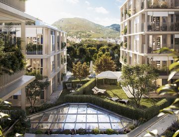 Gli edifici residenziali sono immersi in un paesaggio verde sui tetti. Nei giardini privati, nelle logge o sulle terrazze si può godere della tranquillità e della natura, pur restando nel cuore della città.