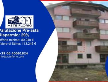 Riferimento: 4504597 Via Cesare Battisti 89, 38077 Comano Terme Trento C. C. Poia, PT 567 II, p. ed. 200, pp. mm. 5, 47 e 72: appartamento con cantina e posto auto, sviluppato a primo piano di un edificio condominiale di sei piani dotato di ascensore e così composto: due stanze, disbrigo, bagno, ingresso/cucina, soggiorno e due poggioli; a piano interrato cantina; a piano terra posto auto esterno di proprietà (p. m. 72 sub. 50). Piazzale, aree esterne...