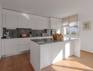 L’appartamento si distingue per gli spazi ben distribuiti, l’ottima luminosità e le finiture moderne e di qualità. La zona giorno è ampia e accogliente, con cucina a vista dotata di isola centrale e completa di elettrodomestici. Una grande portafinestra collega il living alla terrazza coperta e abitabile, creando un collegamento armonioso tra interno ed esterno. A servizio della zona giorno si trova un primo bagno finestrato con doccia.