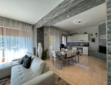 Completano la proprietà una soffitta in parte abitabile, un terreno edificabile e un terreno agricolo con 14 ulivi e box auto con pergolato in legno.