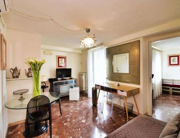 Si propone in affitto un appartamento situato in Via della Gabbia, di fronte alla fontana, al quinto piano di uno stabile dotato di ascensore.