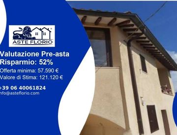 Riferimento: Sellano PG, Italia, 06030 Sellano Perugia Lotto: LOTTO UNICO Diritti di piena proprietà per la quota di un 1/1.Unità immobiliare sita nel Comune di Sellano (PG) Loc. Villamagina censita al Catasto Fabbricati del Comune di Sellano Foglio 41, part.lla 81, sub. 1, Categoria A/4, Classe 3, rendita € 332,34 – Foglio 41, part.lla 81, sub. 2, Categoria C/6, Classe 2, rendita € 8,37. Rata di terreno censita al Catasto del Comune di Sellano Foglio...