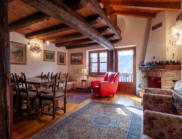 COURMAYEUR BELVEDERE - A pochi passi dalla piazza della chiesa e dalla zona pedonale, in un caratteristico complesso a schiera, proponiamo in locazione un signorile appartamento su due livelli. L'appartamento si compone di cucina completamente accessoriata, soggiorno/pranzo con spettacolare terrazzo e maestosa vista della catena del Monte Bianco e comprensorio sciistico, due camere matrimoniali ed un bagno completo con doccia. L'ampio soppalco ospita...
