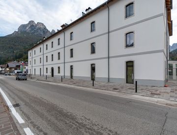 A pochi passi dalla piazza di Agordo, si trova un elegante bilocale situato al secondo piano di un edificio storico, un tempo sede della 78^ Compagnia Alpina “I Lupi”. Questo appartamento, servito da ascensore, rappresenta il connubio ideale tra il fascino della tradizione e il comfort delle tecnologie moderne.