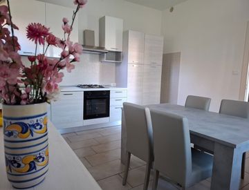 Con un ingresso indipendente, l'appartamento al piano terra offre un ampio soggiorno, una cucina abitabile e due spaziose camere matrimoniali. Completamente arredato e recentemente rimodernato, è dotato di tutti i comfort moderni, incluso il riscaldamento a pompa di calore e aria condizionata. Gli ambienti sono luminosi grazie all'orientamento su quattro lati: Nord, Sud, Est e Ovest.