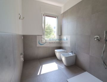 L'appartamento si presenta con un design moderno e minimalista, caratterizzato da pavimenti in gres porcellanato che conferiscono eleganza agli ambienti. La zona giorno è open space, perfetta per accogliere momenti di convivialità con amici e familiari. Le grandi finestre permettono alla luce naturale di riempire gli spazi interni creando un'atmosfera calda e accogliente.