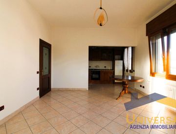 Dall' ingresso accediamo al corridoio che ci conduce alla spaziosa e luminosa zona giorno, semiseparata dall'angolo cottura, con la possibilità di creare due ambienti separati. Dal salotto usciamo nella grande veranda, che si può sfruttare anche di inverno essendo chiusa. A completamento della zona giorno il bagno finestrato con doccia.