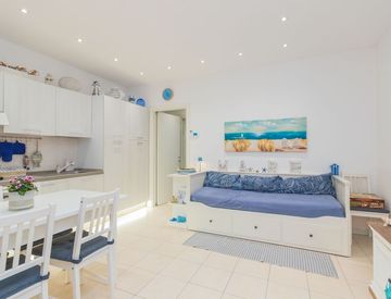 Proponiamo un delizioso bilocale con ingresso indipendente e spazio esterno di 12 mq ad uso esclusivo ubicato di fronte all'accesso al mare della Spiaggia di Ponente ed a pochi passi dalla zona pedonale.