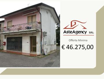 Descrizione sintetica: Appartamento al piano primo composto da soggiorno con angolo cottura, due camere, bagno, ripostiglio e balcone di mq 9,00, con autorimessa in corpo staccato di mq 19,00. Cantina di mq 19,00.