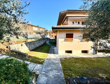 In zona tranquilla tra Caprino v. se e Costermano sul Garda, ampio appartamento bilocale al piano primo composto da ampio soggiorno con angolo cottura, camera matrimoniale, bagno finestrato, disimpegno/ripostiglio e balcone. Vi è la possibilità di realizzo seconda camera da letto per la misura del soggiorno. Completa la proprietà un piccolo giardino privato ed una terrazza ed un garage triplo di ca. 75 mq. Contesto di sole 4 unità con basse spese...