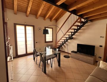 Scopri questo affascinante appartamento arredato situato al primo piano, perfetto per chi cerca comfort e stile. Con una superficie commerciale di 90 m², l'immobile offre un ampio soggiorno/cottura con travi a vista, creando un'atmosfera calda e accogliente. Le due camere da letto sono ideali per una giovane coppia o come spazio extra per ospiti.