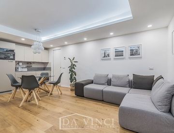 Entrando troviamo la zona living di ca. 40 mq collegata al portico/giardino da una vetrata di 5 metri, proseguendo in zona notte 3 camere di cui due matrimoniali ed un ripostiglio/studio, doppi servizi finestrati.