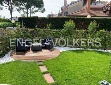L’appartamento, vivibile per tutto l’anno grazie all’impianto di riscaldamento termoautonomo, è circondato su due lati da un curatissimo giardino di oltre 90 mq, ricco di privacy. È presente, inoltre, l’impianto di aria condizionata in pompa di calore.