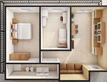 Questa unità immobiliare, servita da ascensore, al suo interno si compone di luminosa zona giorno con angolo cottura rivolta a sud, camera da letto matrimoniale, camera da letto singola, bagno finestrato e un pratico terrazzo ad angolo.