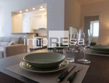 L'appartamento è così composto, a traverso un comodo ingresso veniamo immersi in una spaziosa zona giorno dove si trovano sala pranzo, soggiorno e cucina semi separata totalmente arredata ed equipaggiata, questo ambiente grazie ad una grande vetrata che da accesso ad un terrazzo diventa molto luminoso. L'ingresso dispone di un comodo ripostiglio.