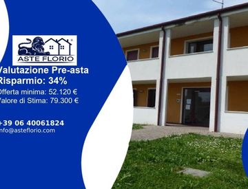 Riferimento: 4512308 Strada di Vistorta, 5/D, 31016 Cordignano Treviso; Piena proprietà per l’intero (100%) di appartamento al piano primo, è composta dal soggiorno/cucina, uu disbrigo, un bagno cieco e una camera con terrazzino, con posto auto coperto con annesso vano cantina al piano seminterrato, facenti parte del “Residence Vistorta”. Occupato dall’esecutato. Data di vendita: 13/03/2026 Offerta minima: € 52.120, 00 Valore di stima: € 79.300, 00...