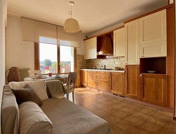 L’ingresso si apre su una zona giorno accogliente e luminosa, caratterizzata da ampie finestre e da un piacevole terrazzino dove potrai goderti momenti di relax con vista panoramica sul paese.
