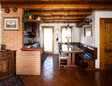 Completa la proprietà un garage doppio situato al piano interrato. L'immobile edificato negli anni '90 è dotato infissi in legno di abete vetro-camera e riscaldamento autonomo. Altre finiture di pregio sono i pavimenti in ceramica e le travi a vista. Dalla terrazza si gode di una bella vista sul paese e sulla vallata....
