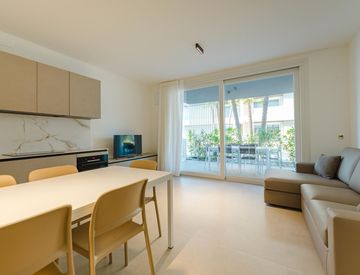 All’esterno, il residence offre una raffinata area piscina e relax immersa nel verde, perfetta per momenti di benessere e tranquillità.