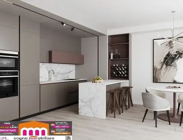 La cucina open space, moderna e funzionale, è perfetta per chi ama cucinare e condividere momenti conviviali con amici e familiari.