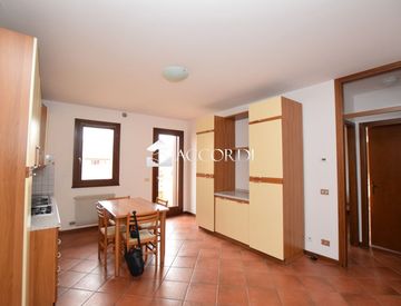 Ingresso su zona giorno con soggiorno ed angolo cottura, terrazzo, disimpegno, un bagno completo di doccia, lavella ed attacco lavatrice, una camera matrimoniale.