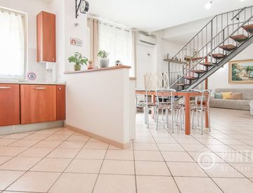 La soluzione, posta al secondo piano, si apre su un ampio soggiorno con cucina a vista esposta a est: due grandi porte finestre donano luminosità agli ambienti e conducono al terrazzo esterno, ampio e vivibile. Un corridoio porta alla camera matrimoniale, anch’essa collegata al balcone, e a un bagno con vetrocemento servito di doccia; completa il piano un pratico ripostiglio.
