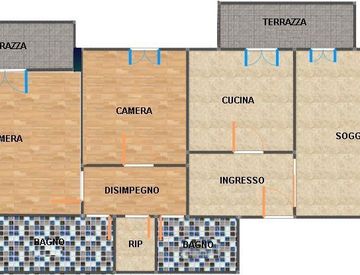 La zona notte è composta da una camera matrimoniale dotata di accesso diretto a un secondo poggiolo privato, oltre a una seconda camera spaziosa che offre molteplici possibilità d'uso. Completano l'appartamento due bagni: uno finestrato per maggiore comodità quotidiana e un secondo bagno cieco utilizzabile anche come lavanderia. Non manca infine un pratico ripostiglio per ottimizzare lo spazio.