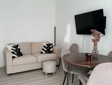 Si vende completamente arredato: zona giorno open space con cucina attrezzata, divano, tavolo e TV a parete; camera matrimoniale con arredi su misura e scrivania; bagno finestrato con box doccia e lavatrice inclusa.